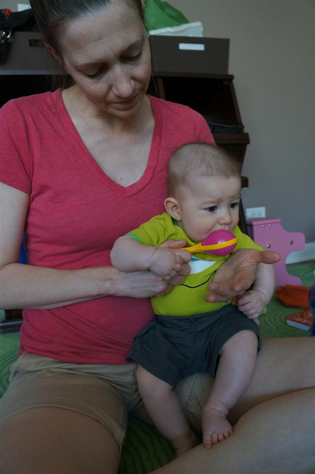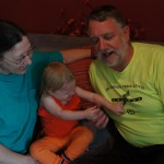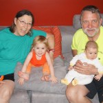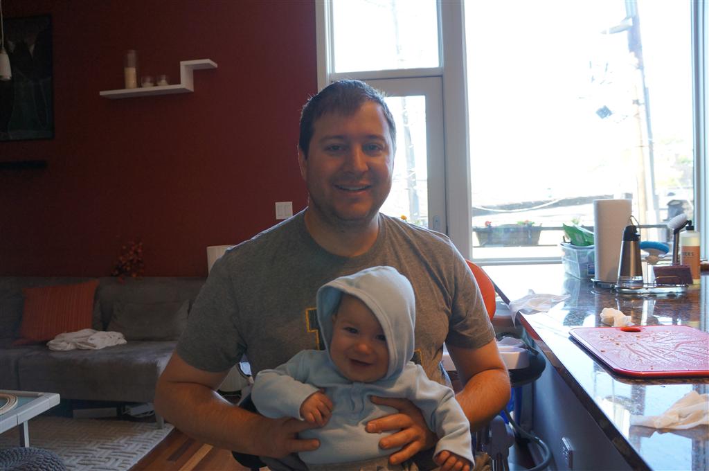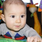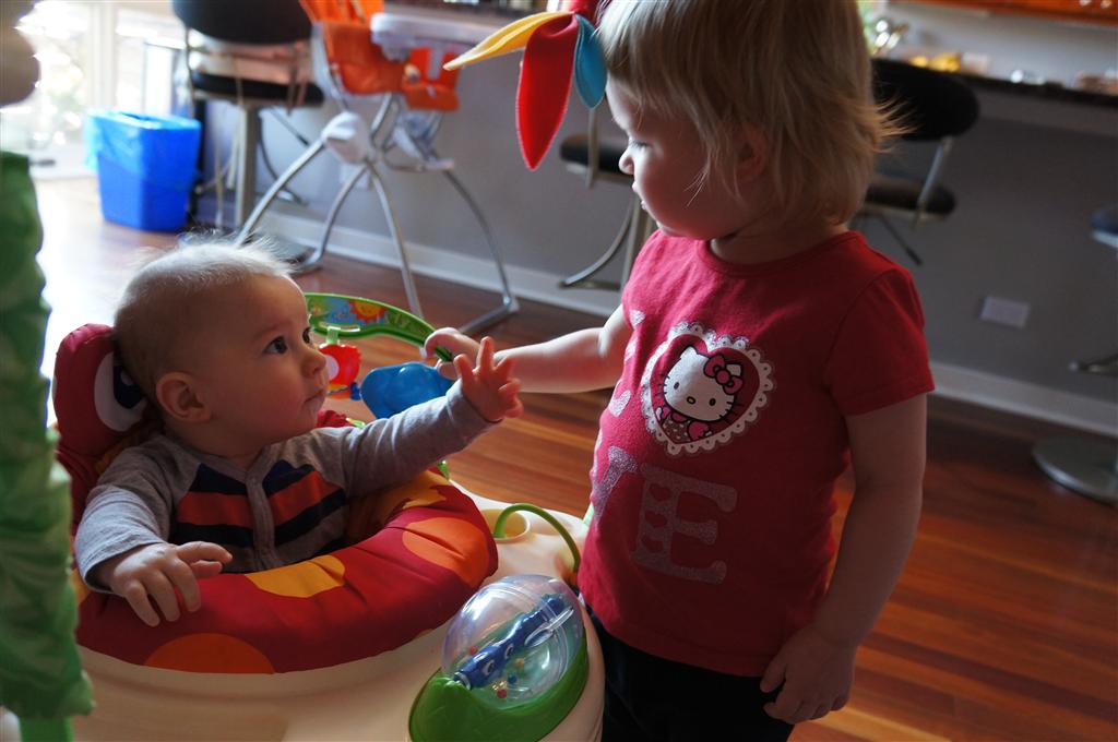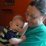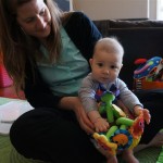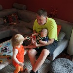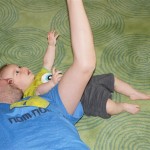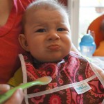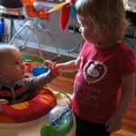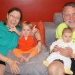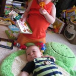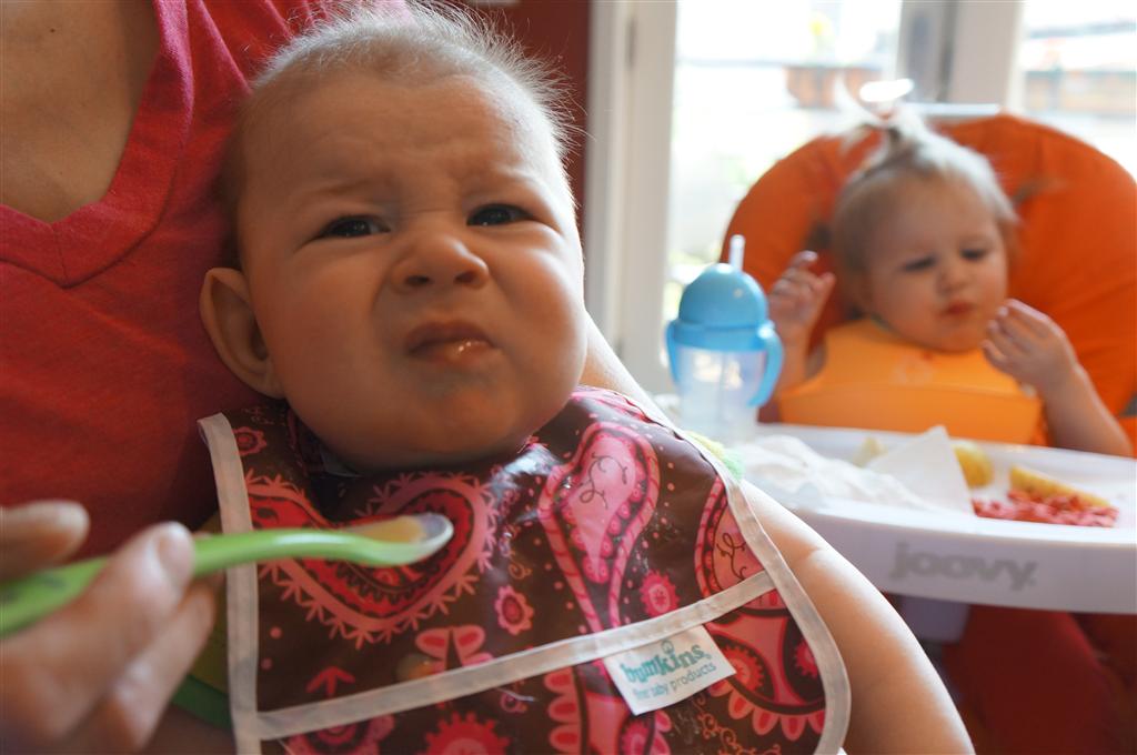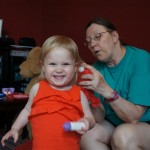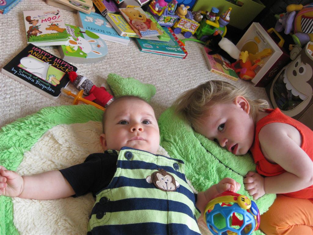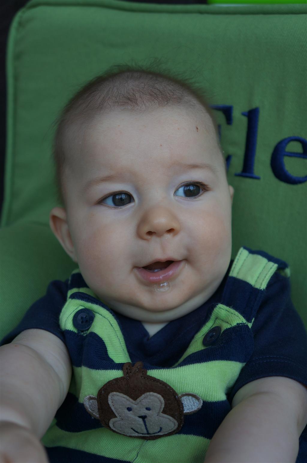 Henry had his first bites of food this week – pears. He wasn’t a big fan, but I’m sure that he will come around. The first bites were mostly met with confusion and funny face expressions. He did end up eating a little bit, but most of it came back out his mouth. Eleanor was eating lunch at the time, but that didn’t seem to instill a great appetite in Henry. This weekend he and Eleanor alternated their naps a bit, so Henry got some rare time with both Mom and Dad, which was fun. Henry is starting to put some weight on his legs, and sometimes can bear all of his weight for a few seconds.