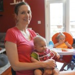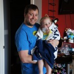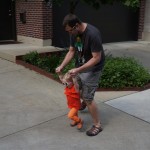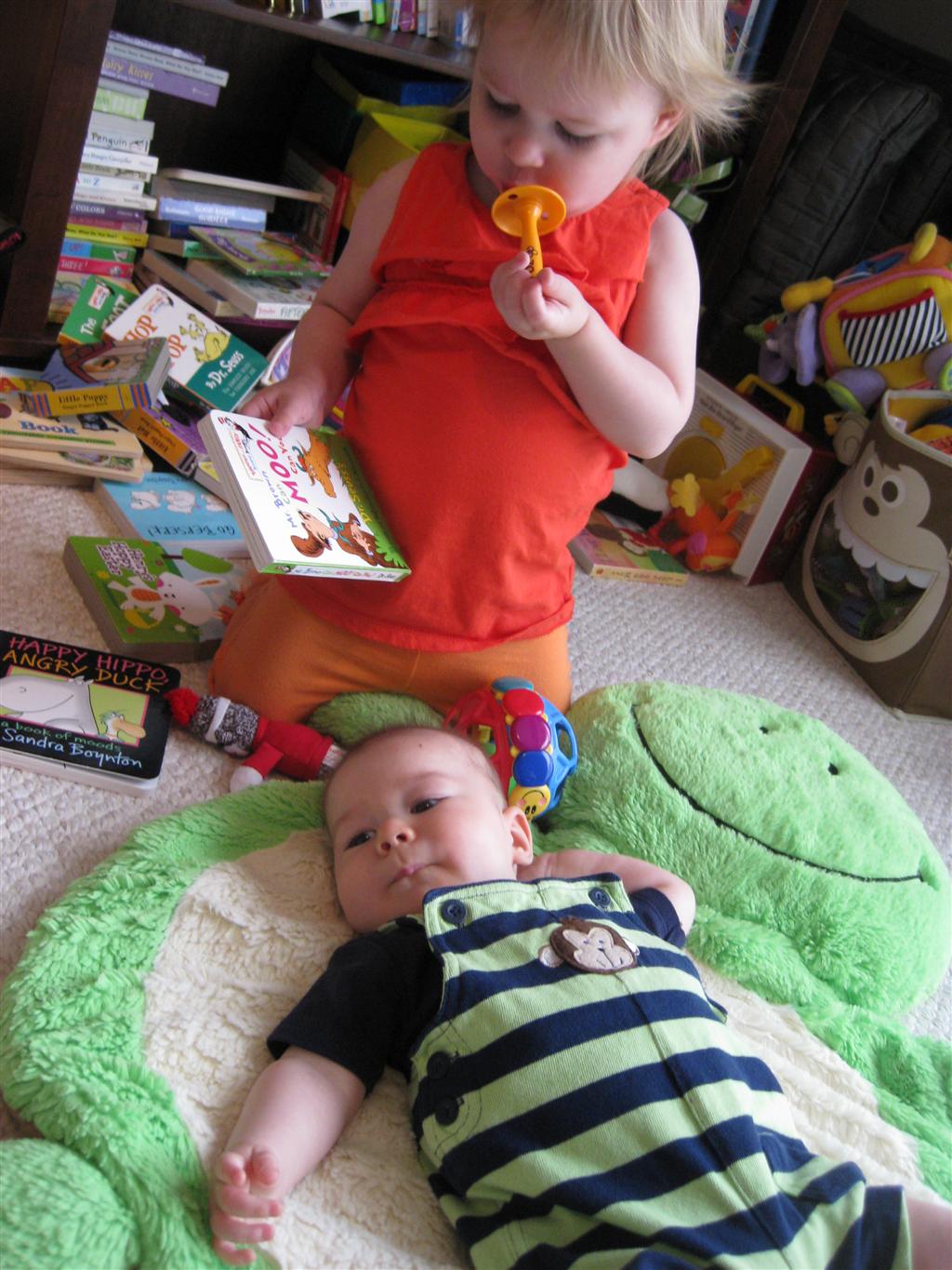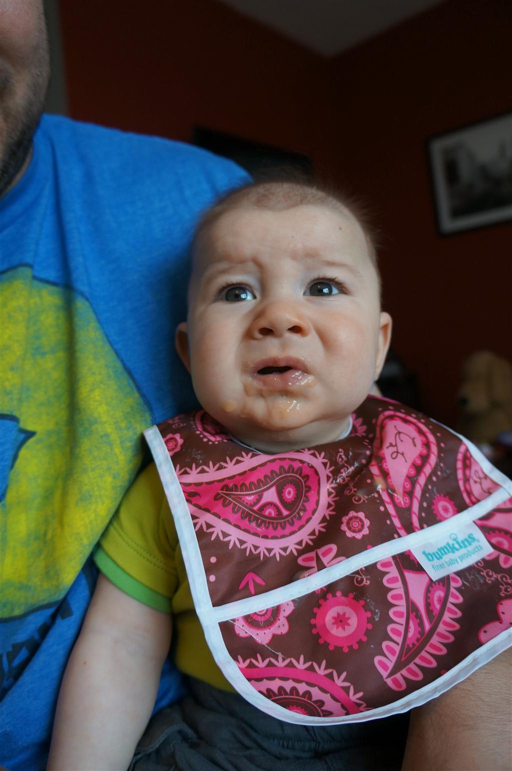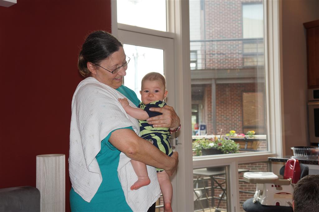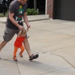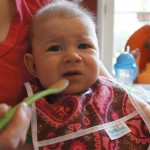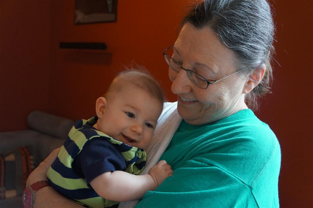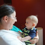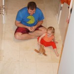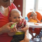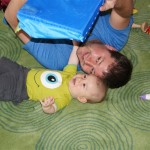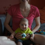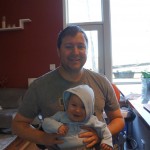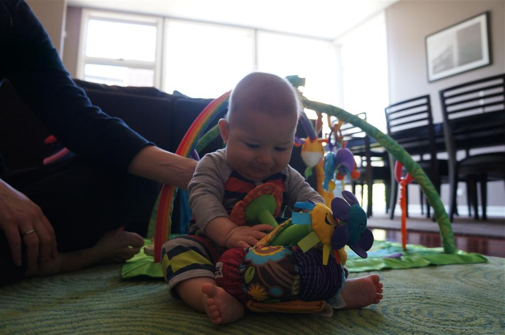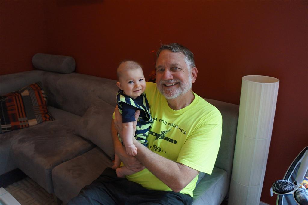 Henry had his first bites of food this week – pears. He wasn’t a big fan, but I’m sure that he will come around. The first bites were mostly met with confusion and funny face expressions. He did end up eating a little bit, but most of it came back out his mouth. Eleanor was eating lunch at the time, but that didn’t seem to instill a great appetite in Henry. This weekend he and Eleanor alternated their naps a bit, so Henry got some rare time with both Mom and Dad, which was fun. Henry is starting to put some weight on his legs, and sometimes can bear all of his weight for a few seconds.