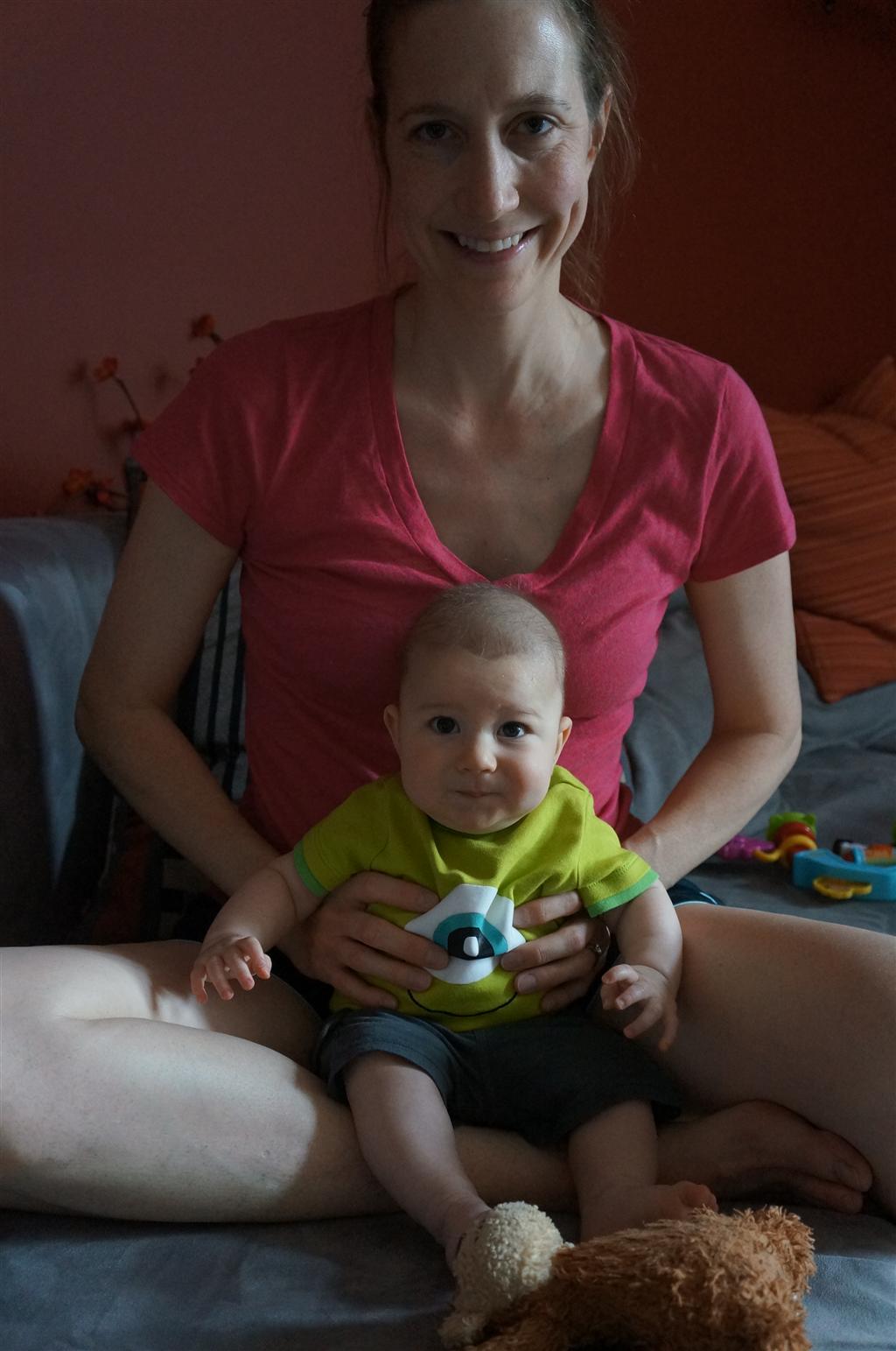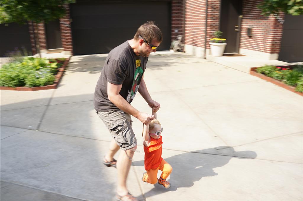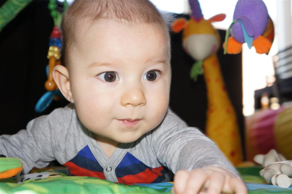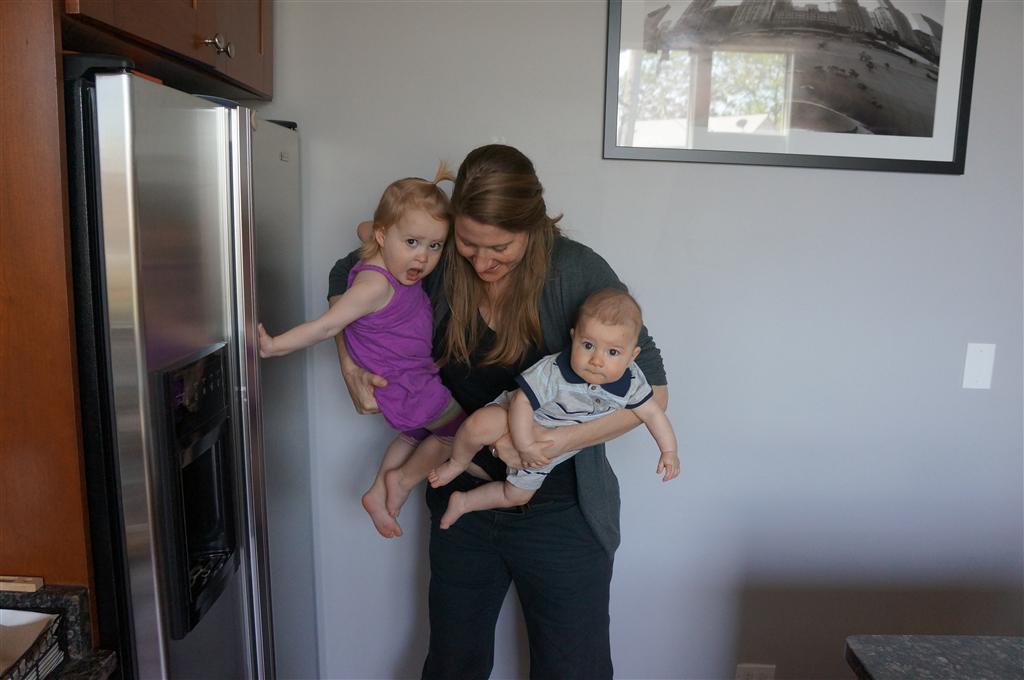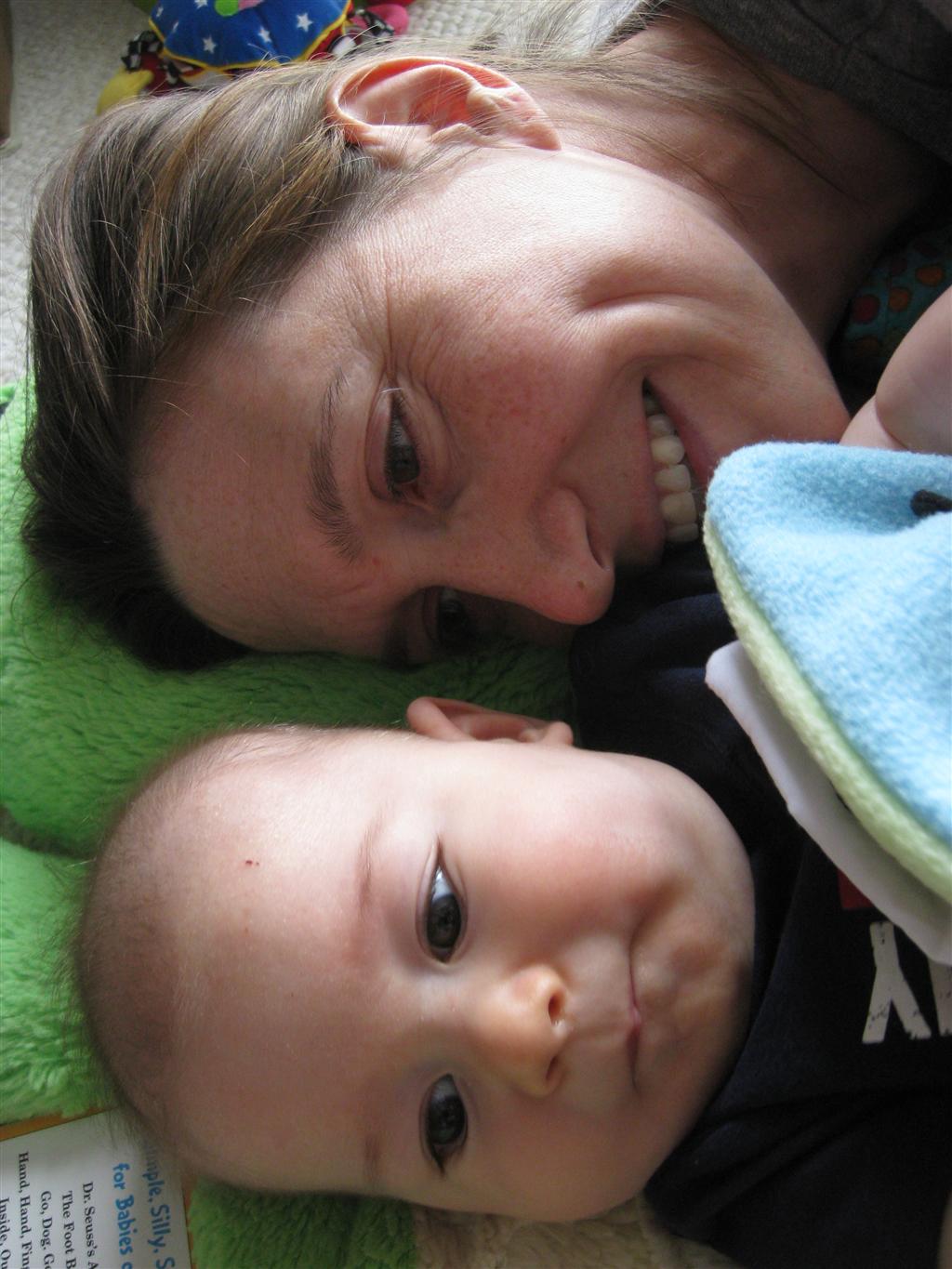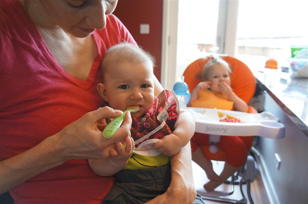 Henry had his first bites of food this week – pears. He wasn’t a big fan, but I’m sure that he will come around. The first bites were mostly met with confusion and funny face expressions. He did end up eating a little bit, but most of it came back out his mouth. Eleanor was eating lunch at the time, but that didn’t seem to instill a great appetite in Henry. This weekend he and Eleanor alternated their naps a bit, so Henry got some rare time with both Mom and Dad, which was fun. Henry is starting to put some weight on his legs, and sometimes can bear all of his weight for a few seconds.