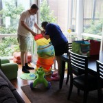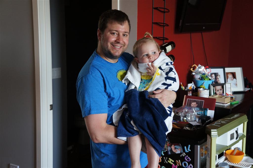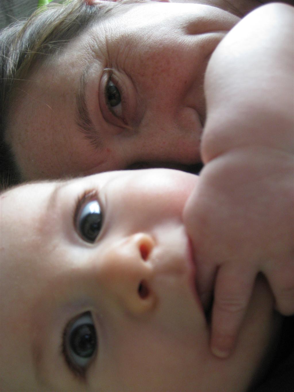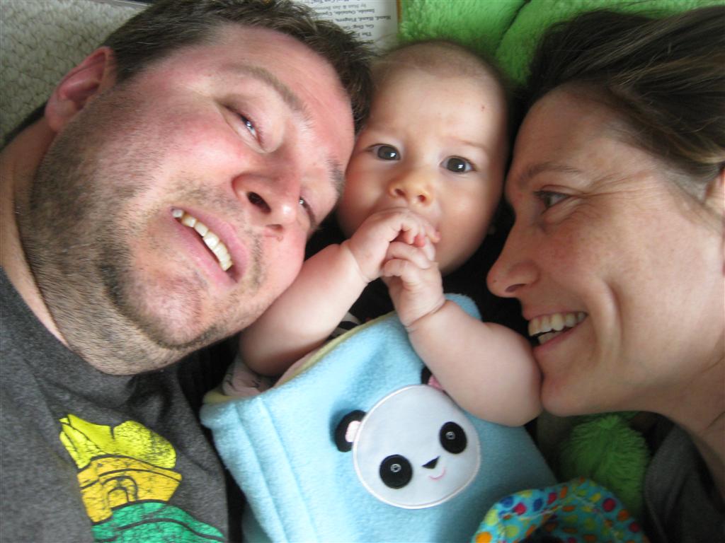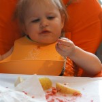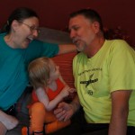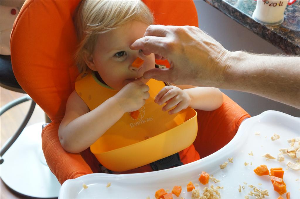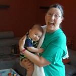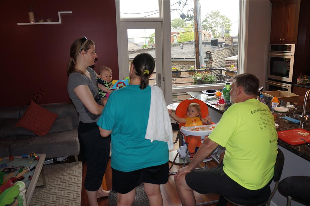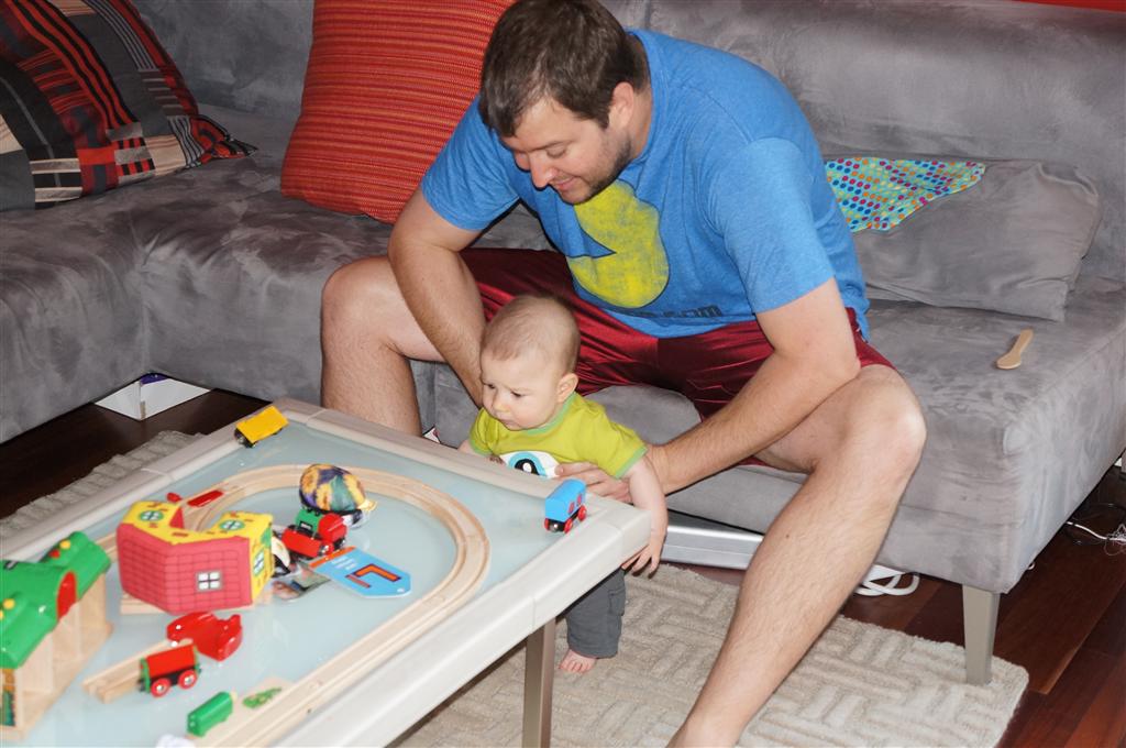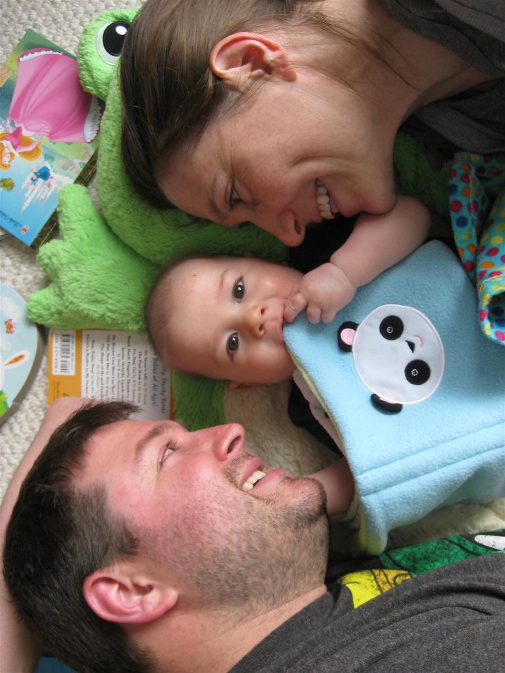 Henry had his first bites of food this week – pears. He wasn’t a big fan, but I’m sure that he will come around. The first bites were mostly met with confusion and funny face expressions. He did end up eating a little bit, but most of it came back out his mouth. Eleanor was eating lunch at the time, but that didn’t seem to instill a great appetite in Henry. This weekend he and Eleanor alternated their naps a bit, so Henry got some rare time with both Mom and Dad, which was fun. Henry is starting to put some weight on his legs, and sometimes can bear all of his weight for a few seconds.
