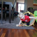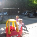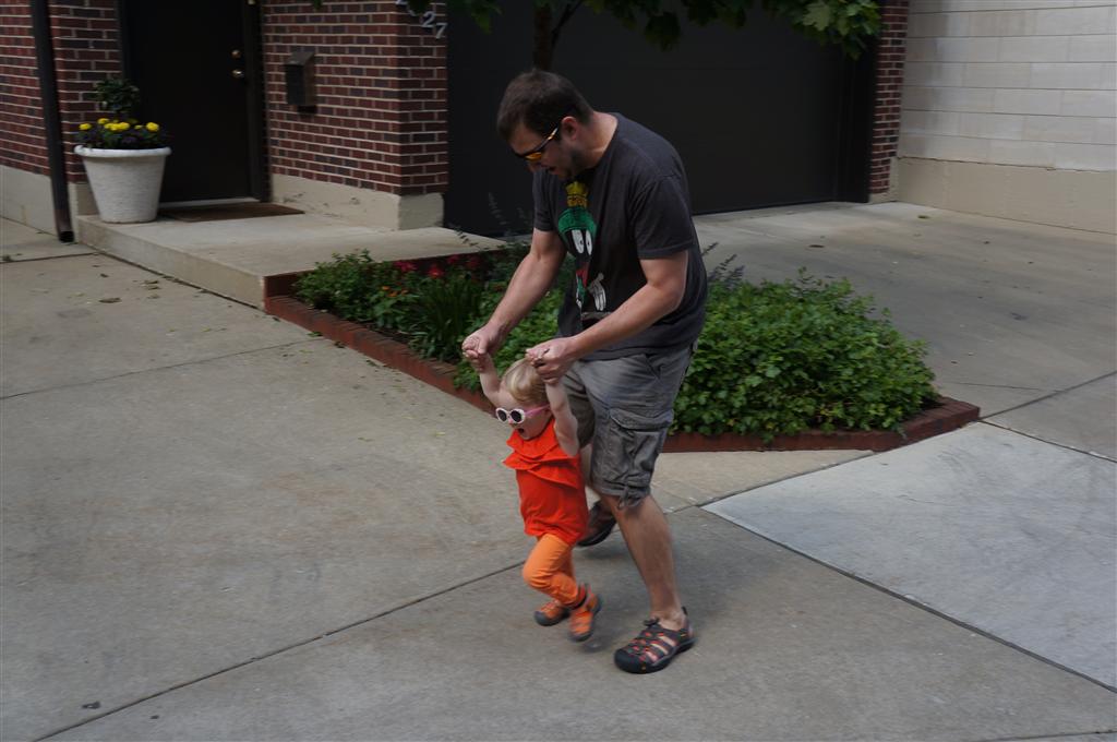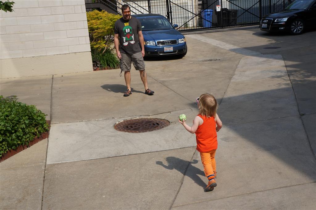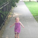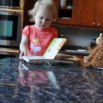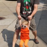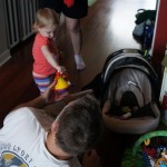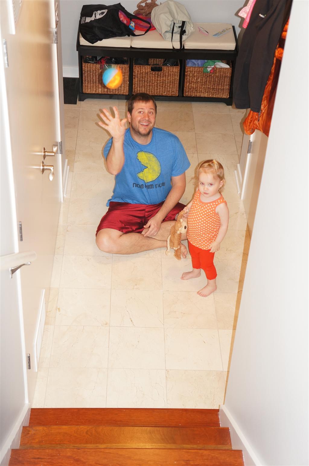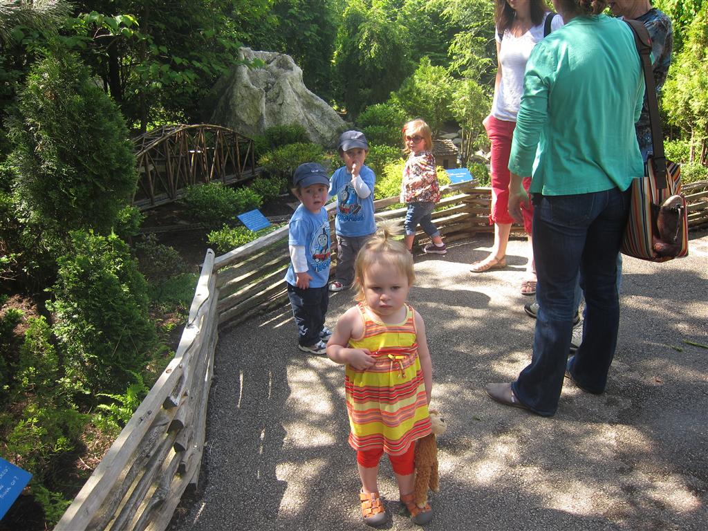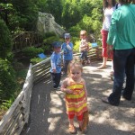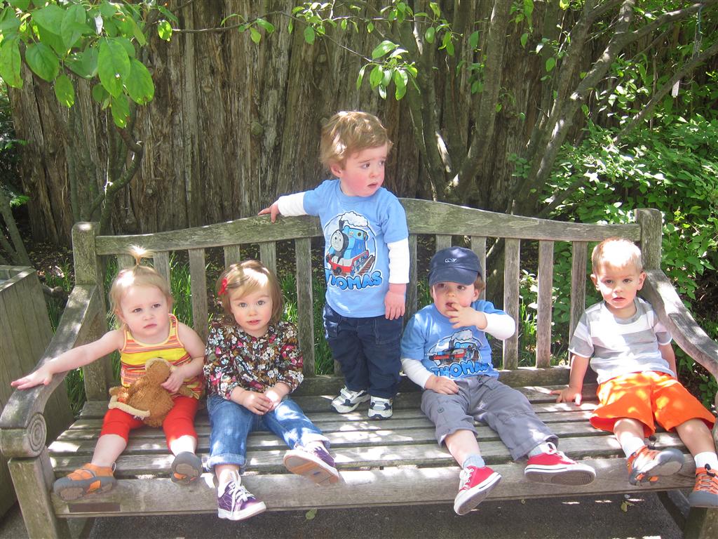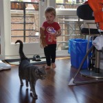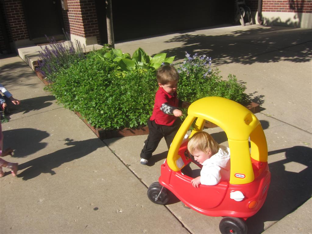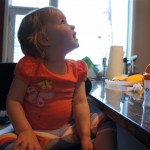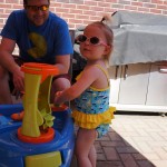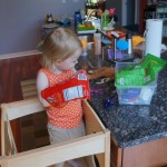 Eleanor has been practicing her alphabet a lot this week – in fact on Friday she was running back forth between the family room and the fridge where her magnet letters are while Mom was making lunch. Mom finally stopped to see what she was up to, and found Eleanor holding the letter E, Monkey sitting on the slide with the letter M next to her, and the letter H on the floor in front on Henry in the jumparoo. Very impressive! Eleanor also conquered a new section of the park this week all by herself, climbing though the maze and finishing on the slide that is intended for the bigger kids. And she has a new tooth coming in, one of her two year molars.