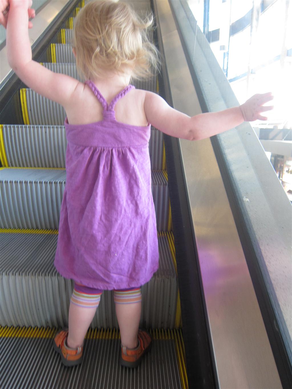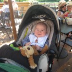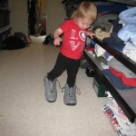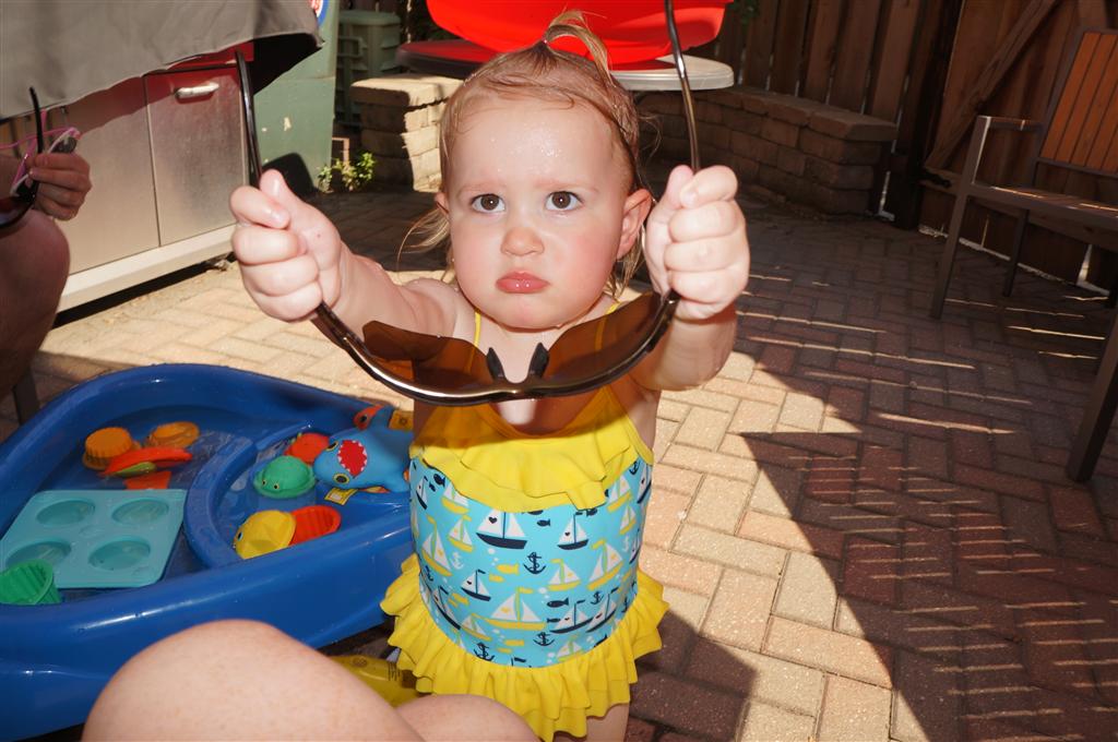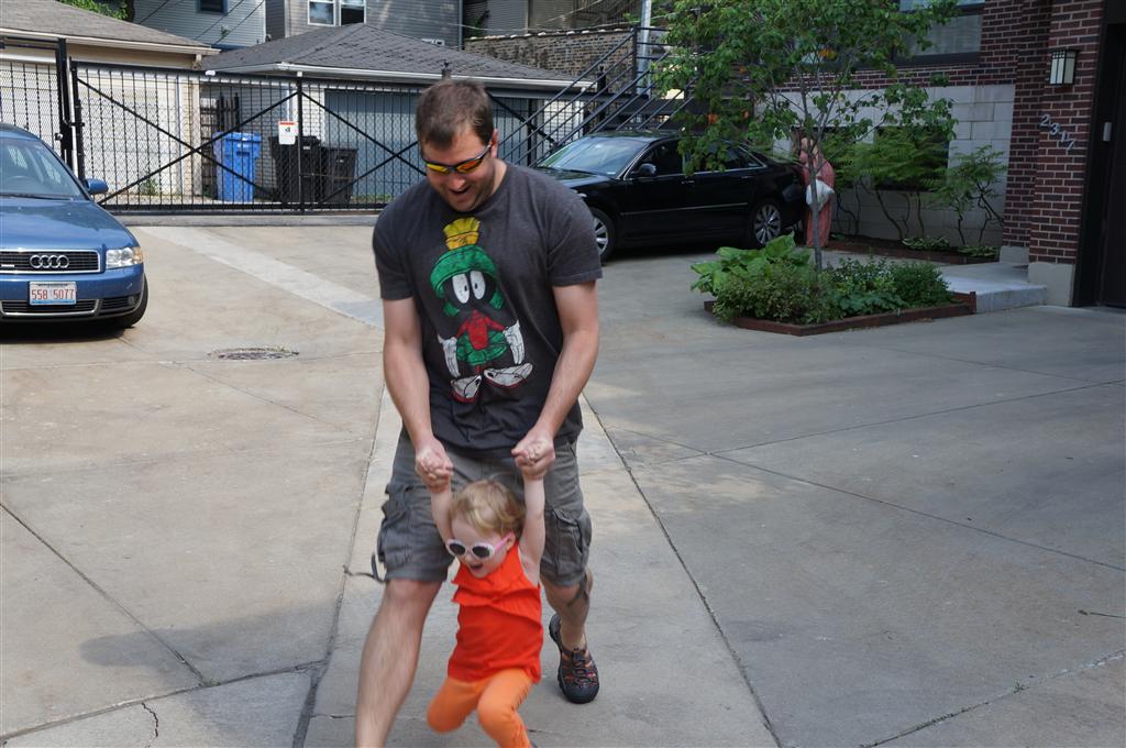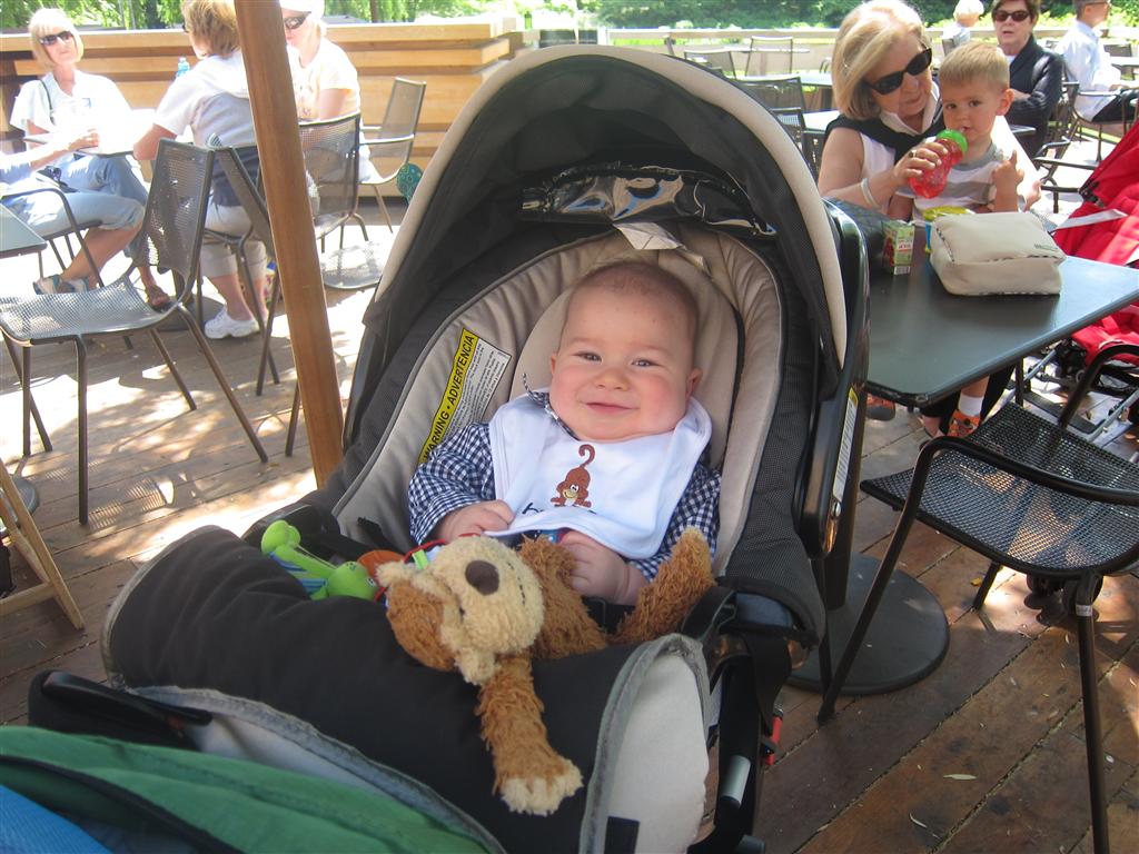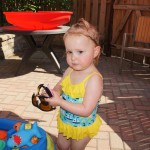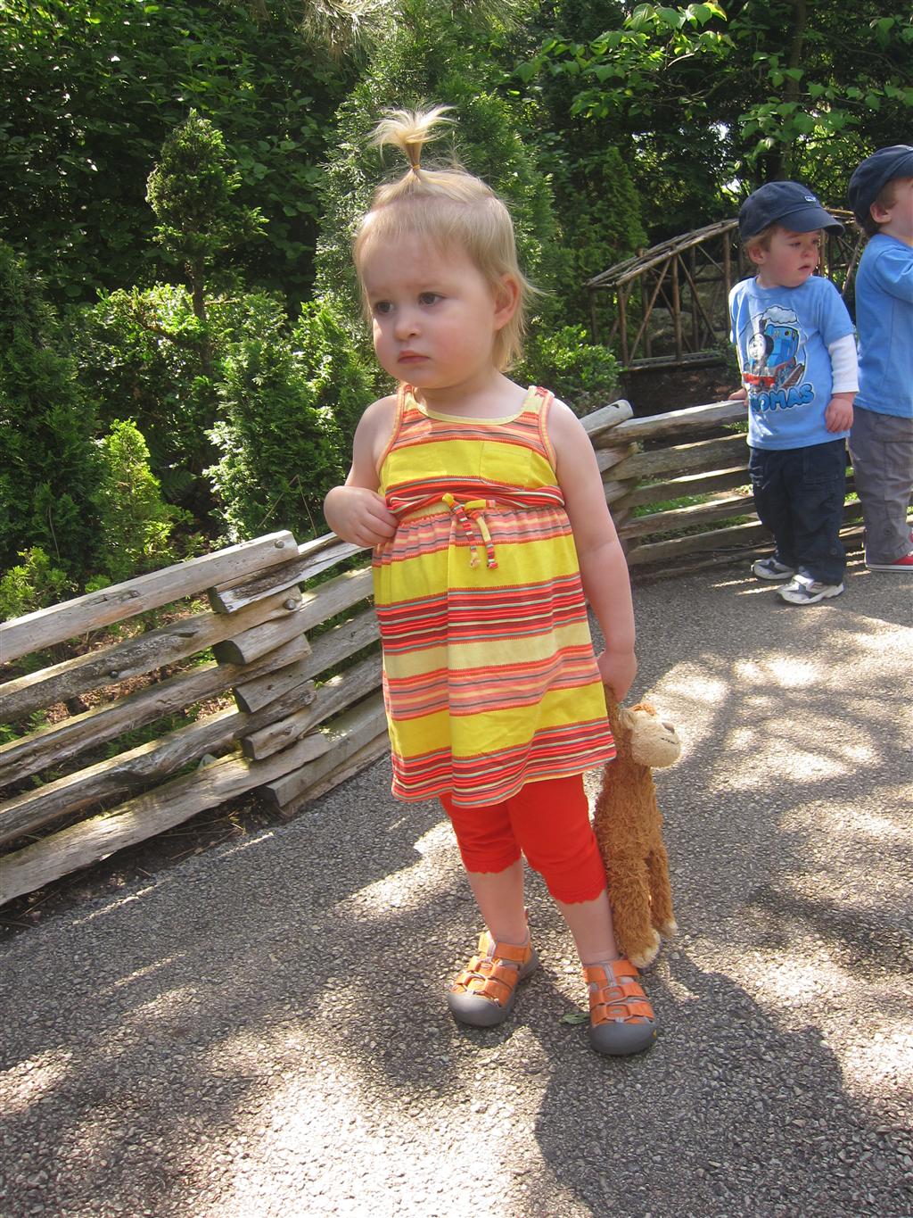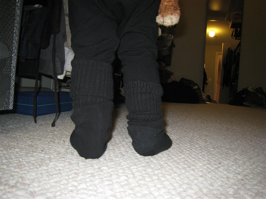 Eleanor has been practicing her alphabet a lot this week – in fact on Friday she was running back forth between the family room and the fridge where her magnet letters are while Mom was making lunch. Mom finally stopped to see what she was up to, and found Eleanor holding the letter E, Monkey sitting on the slide with the letter M next to her, and the letter H on the floor in front on Henry in the jumparoo. Very impressive! Eleanor also conquered a new section of the park this week all by herself, climbing though the maze and finishing on the slide that is intended for the bigger kids. And she has a new tooth coming in, one of her two year molars.