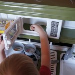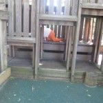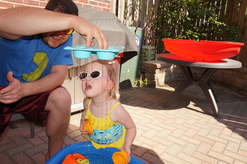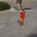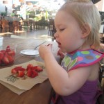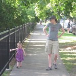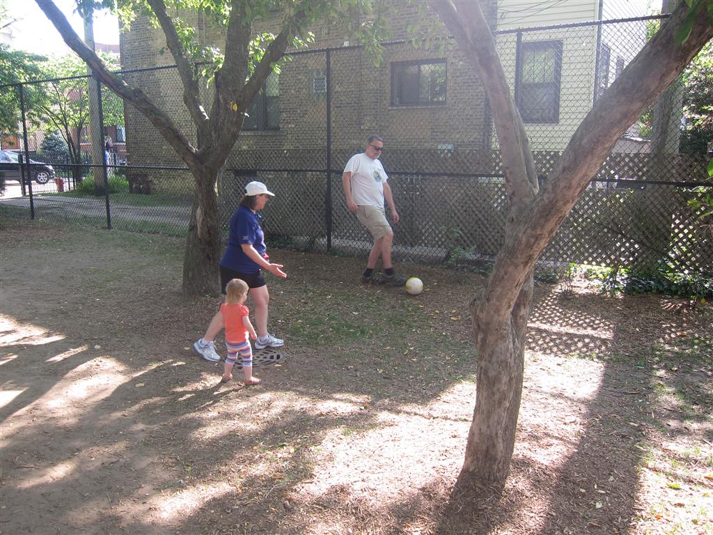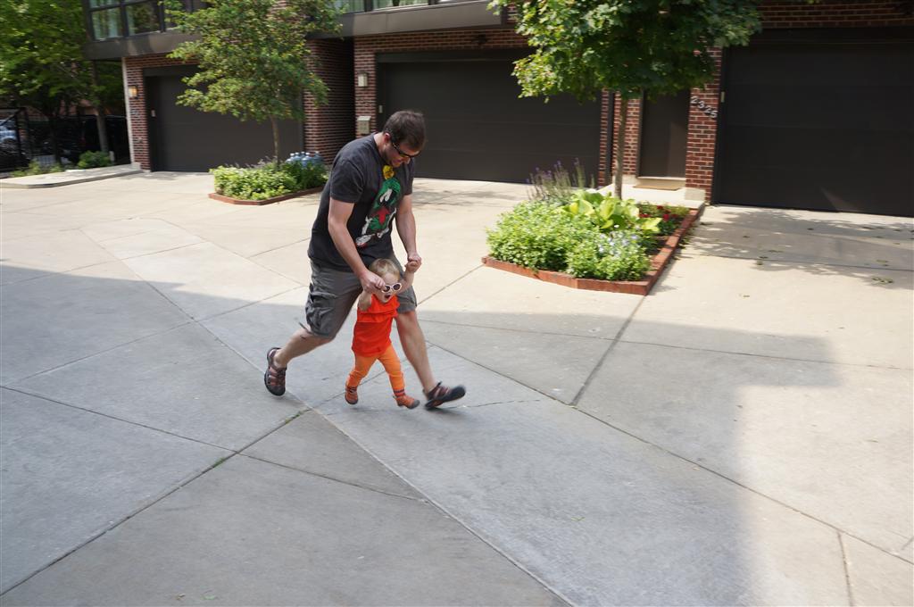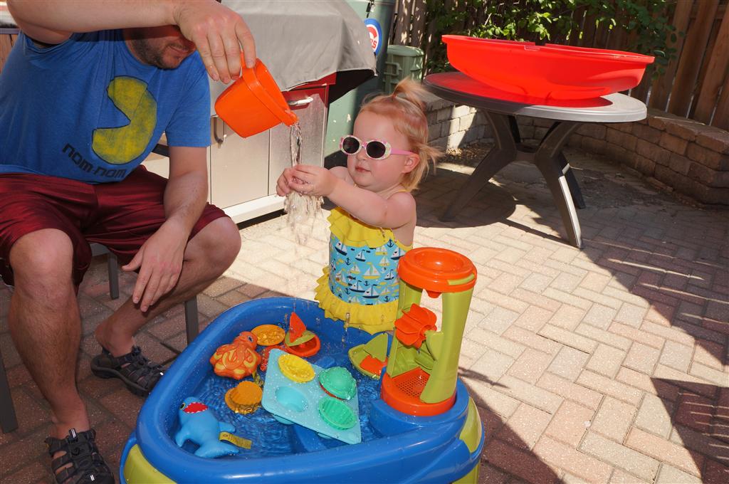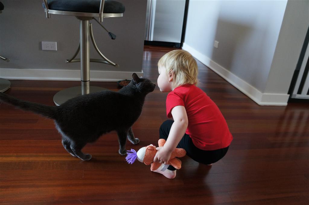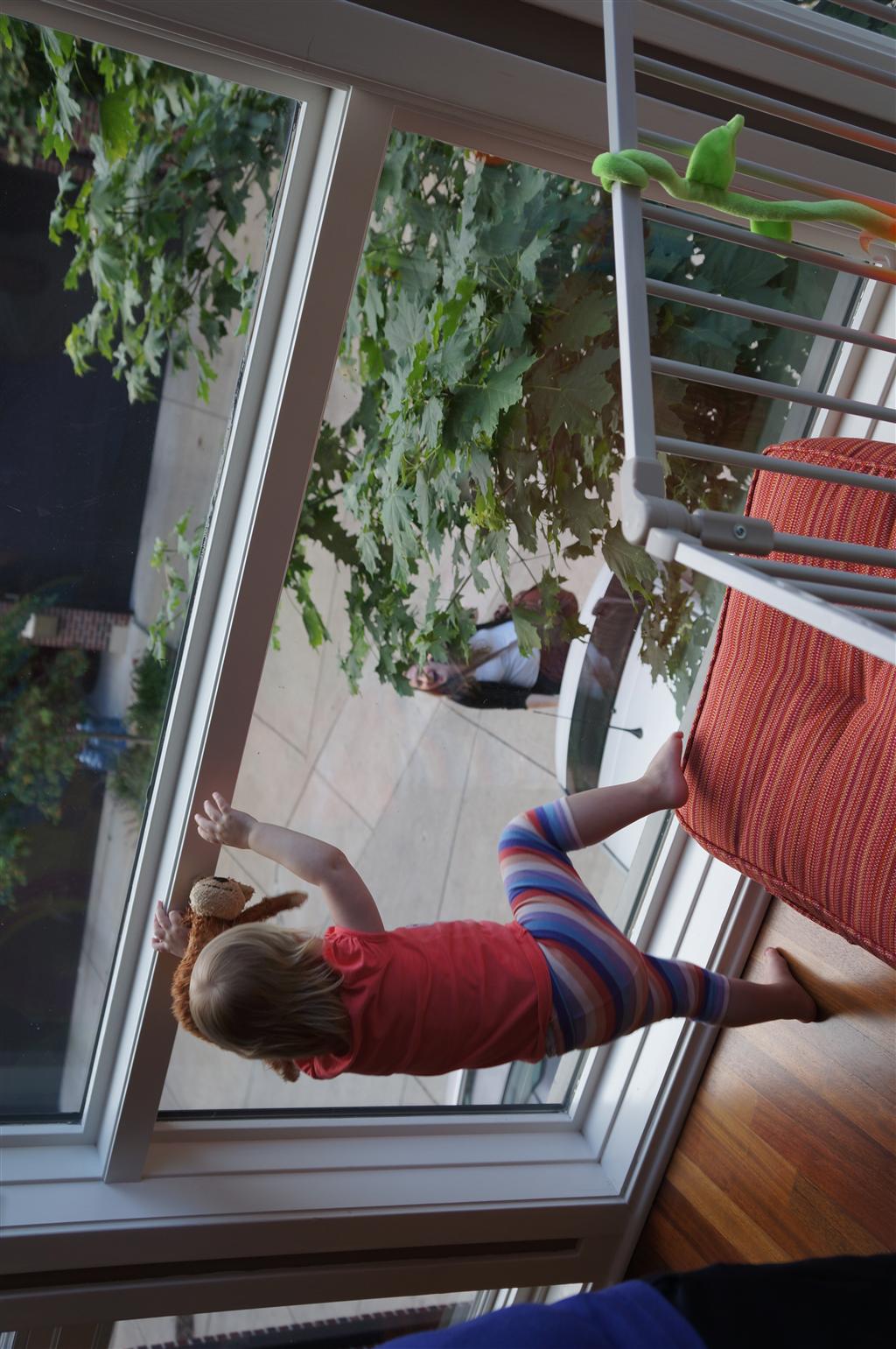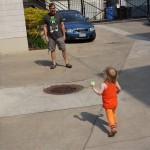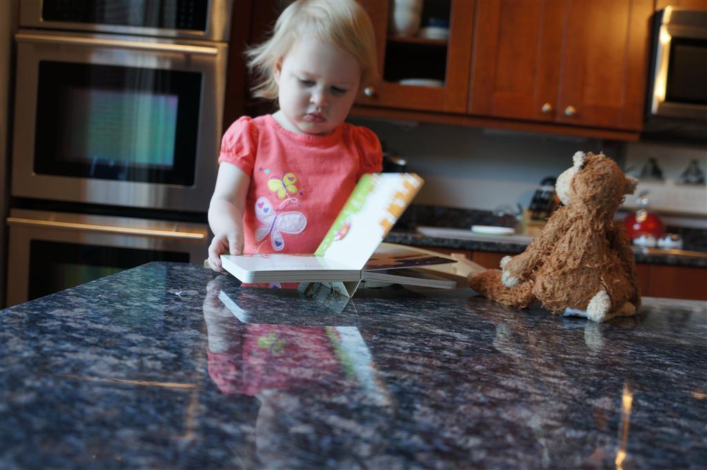 Eleanor has been practicing her alphabet a lot this week – in fact on Friday she was running back forth between the family room and the fridge where her magnet letters are while Mom was making lunch. Mom finally stopped to see what she was up to, and found Eleanor holding the letter E, Monkey sitting on the slide with the letter M next to her, and the letter H on the floor in front on Henry in the jumparoo. Very impressive! Eleanor also conquered a new section of the park this week all by herself, climbing though the maze and finishing on the slide that is intended for the bigger kids. And she has a new tooth coming in, one of her two year molars.