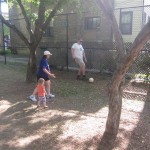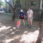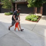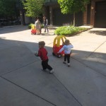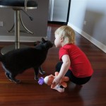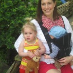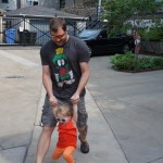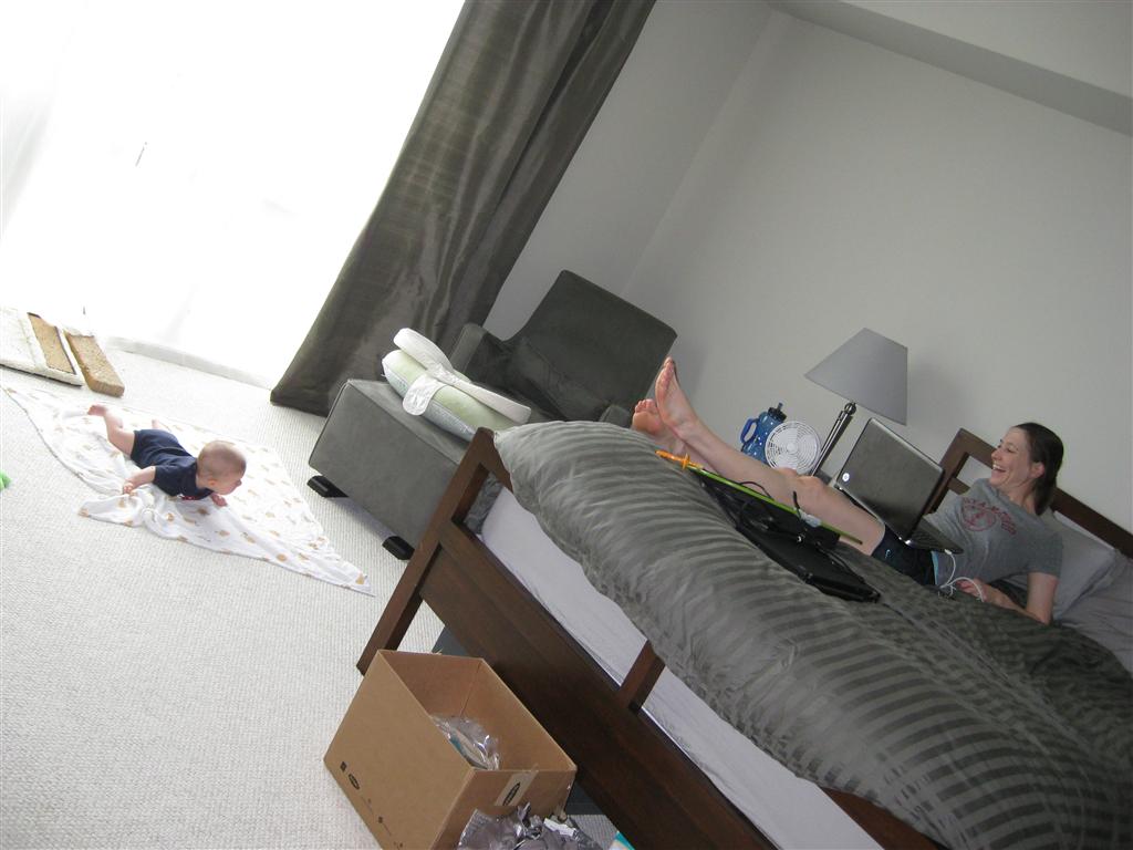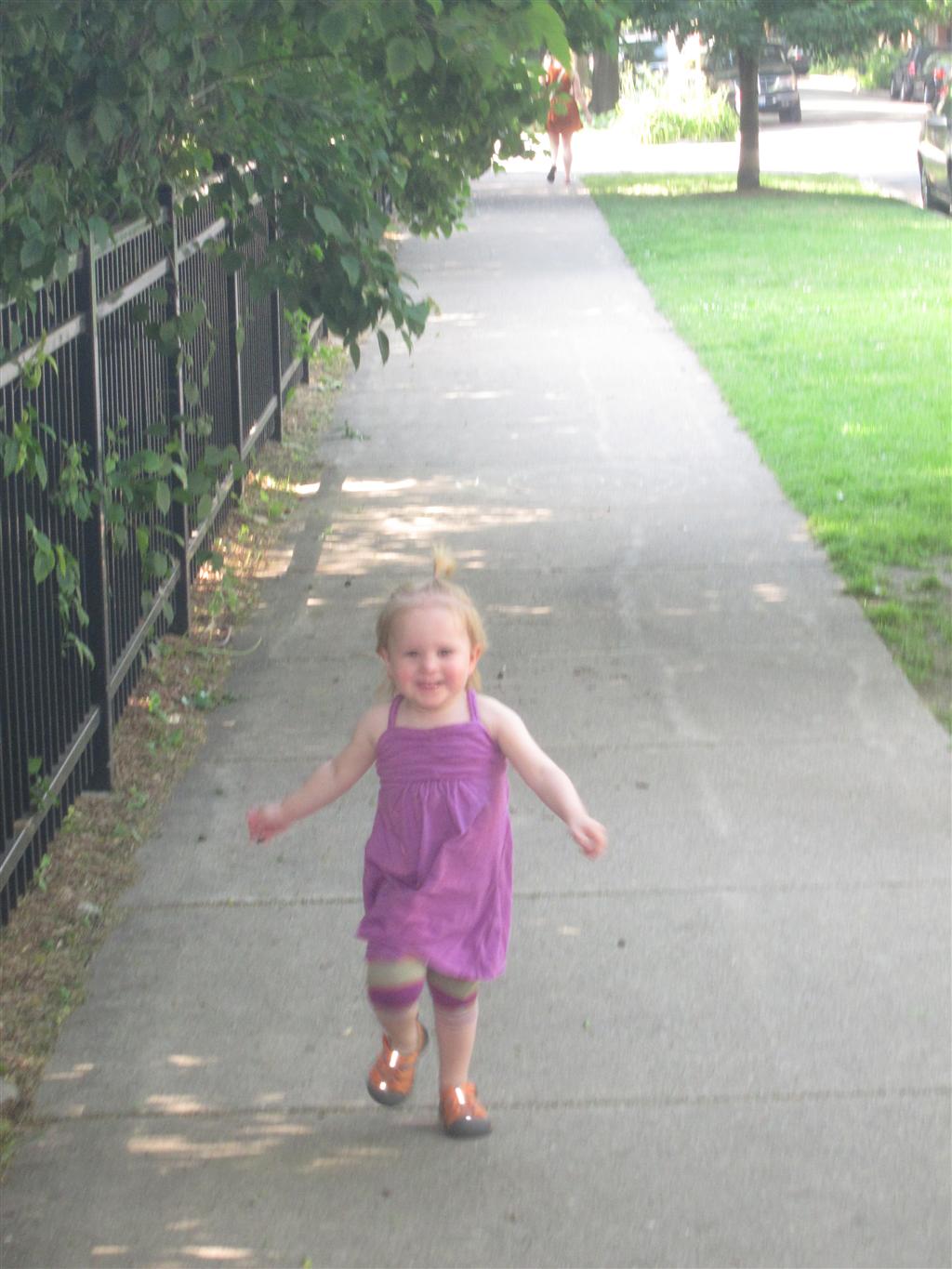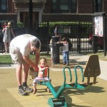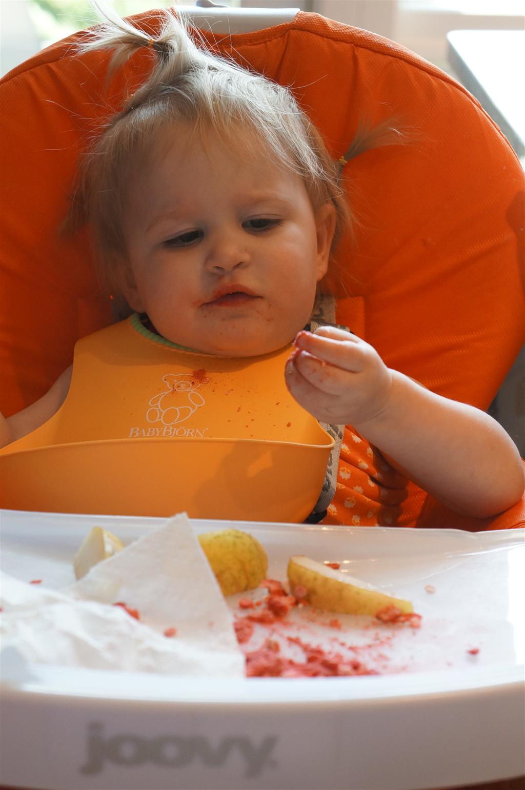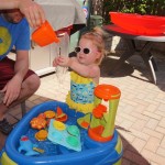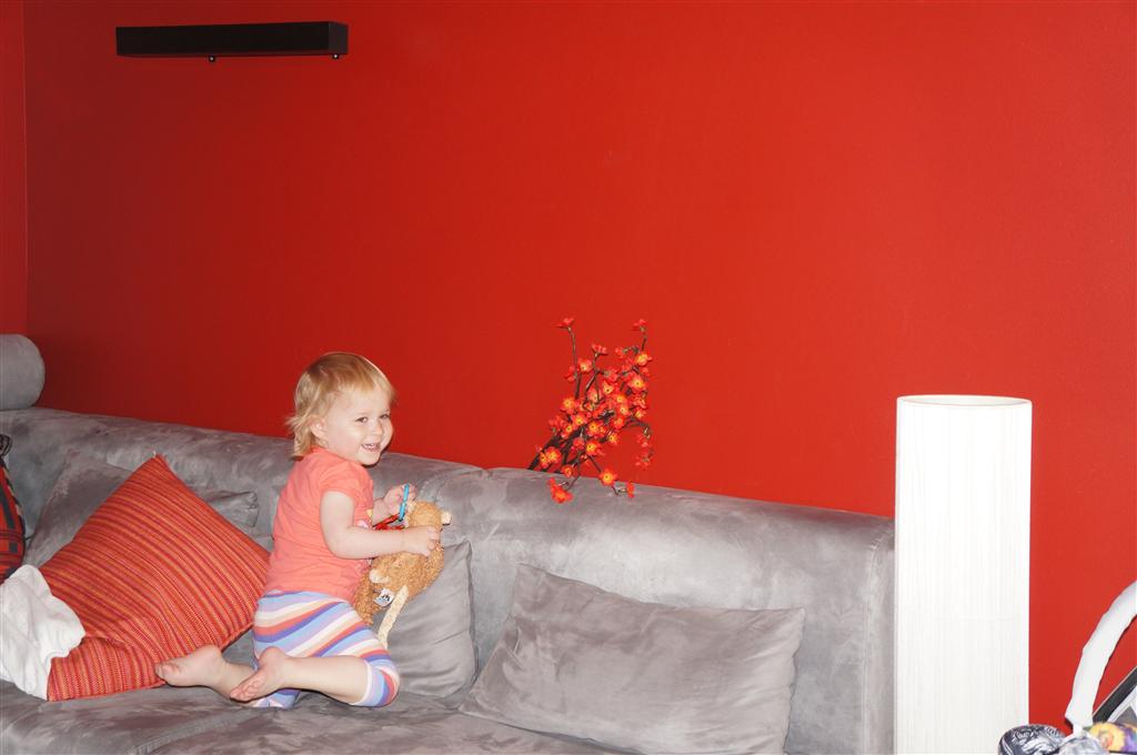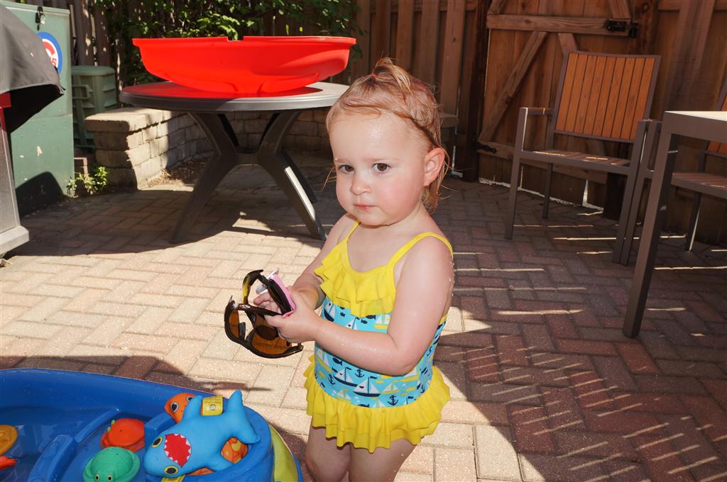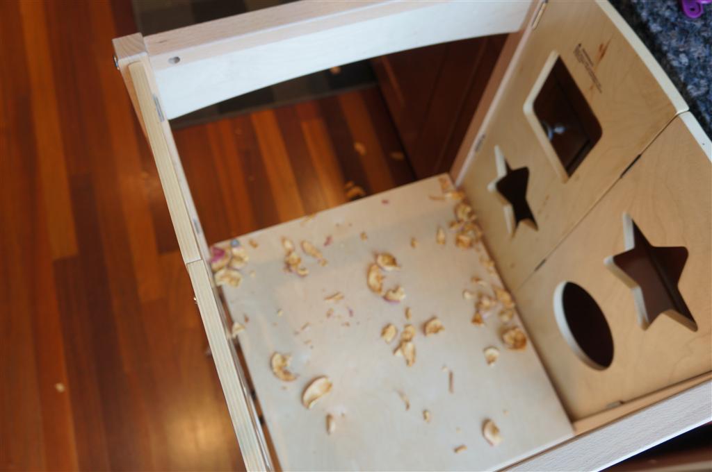 Eleanor has been practicing her alphabet a lot this week – in fact on Friday she was running back forth between the family room and the fridge where her magnet letters are while Mom was making lunch. Mom finally stopped to see what she was up to, and found Eleanor holding the letter E, Monkey sitting on the slide with the letter M next to her, and the letter H on the floor in front on Henry in the jumparoo. Very impressive! Eleanor also conquered a new section of the park this week all by herself, climbing though the maze and finishing on the slide that is intended for the bigger kids. And she has a new tooth coming in, one of her two year molars.