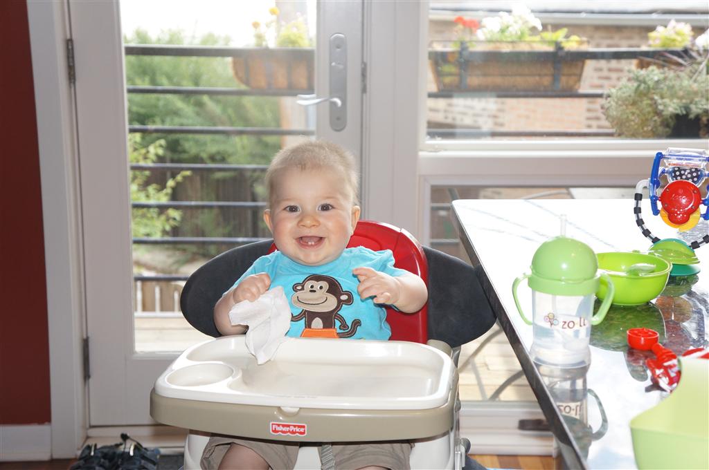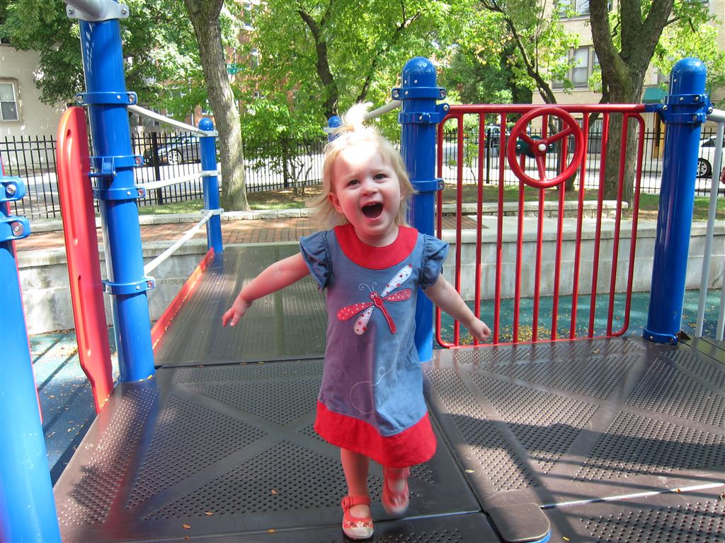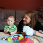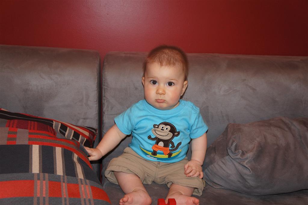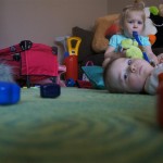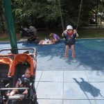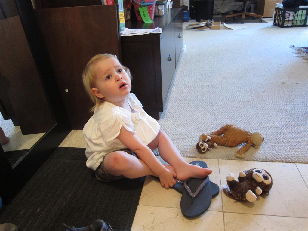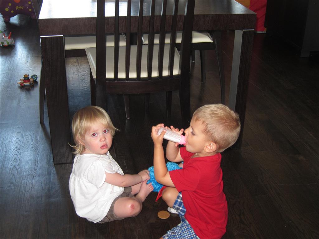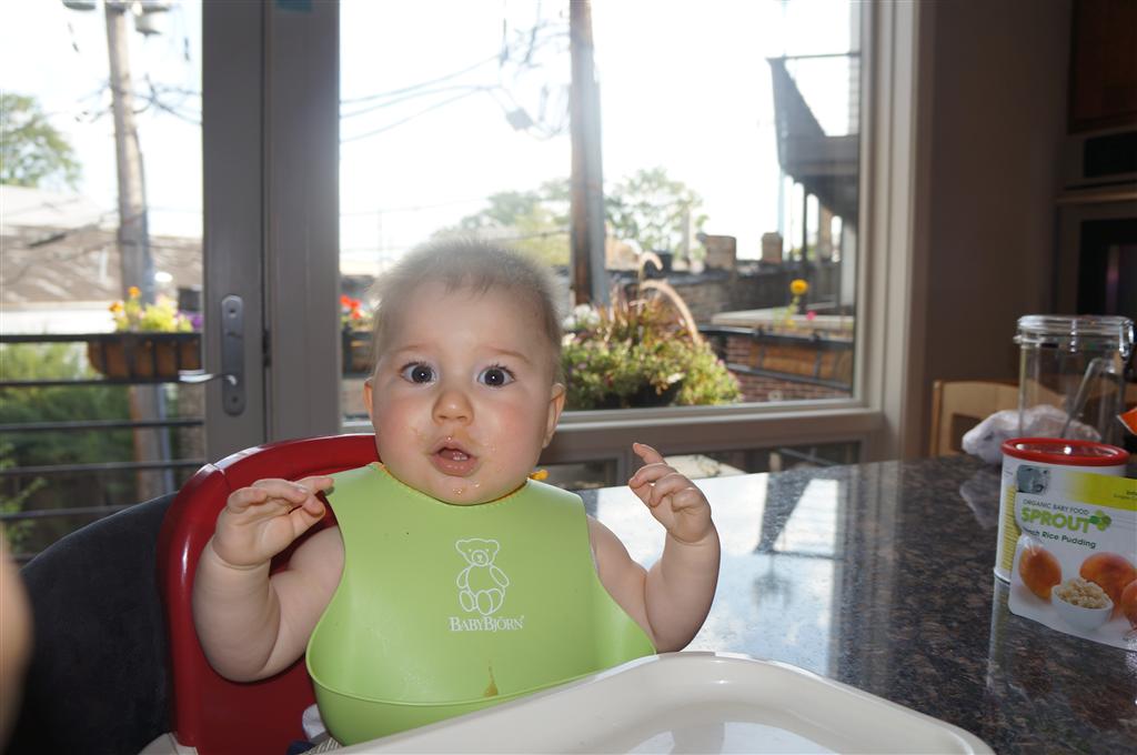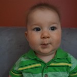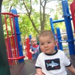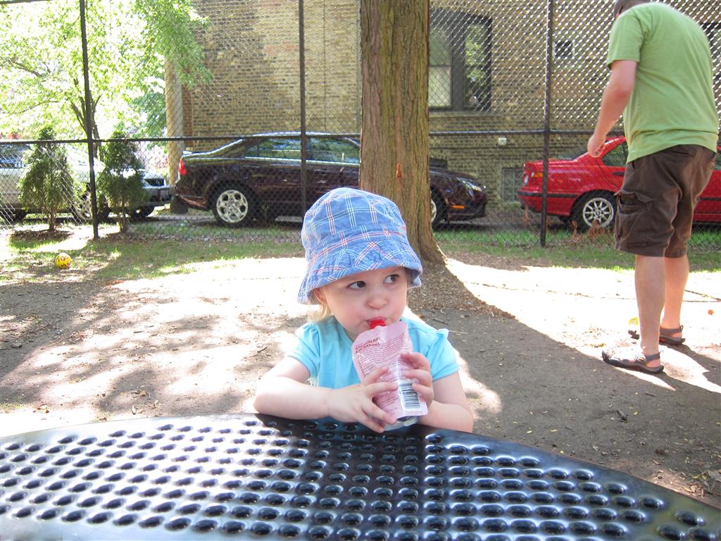 Eleanor and Henry had a fun week trying to beat the late July heat. Our park trips were a bit shorter than normal – Henry in particular doesn’t love the heat. Henry’s first top tooth is finally making some progress after several weeks of anticipation. It has now broken through the skin and is just starting to show. His new trick is to imitate Mom’s “kissing face”, and he ends up making a funny sort of fish face. His favorite toys are currently the maraca and the bell and the train. He is really reaching for toys that he wants now, but hasn’t quite managed to roll over from back to tummy. He gets about half way around and gets stuck. His sitting is excellent – he can stay sitting indefinitely, with only the occasional face plants or back splats. Henry really enjoyed a trip to the office to visit Uncle B – the Angry Birds were a big hit.