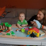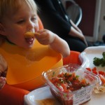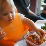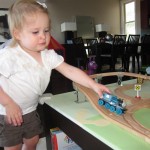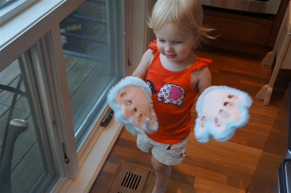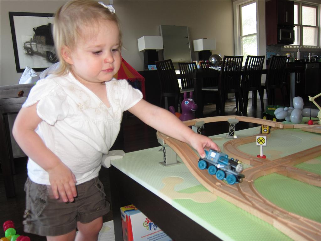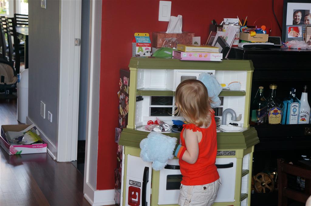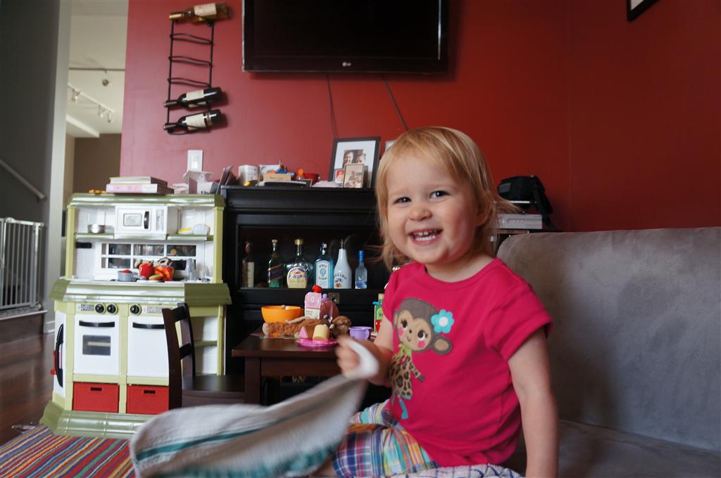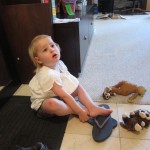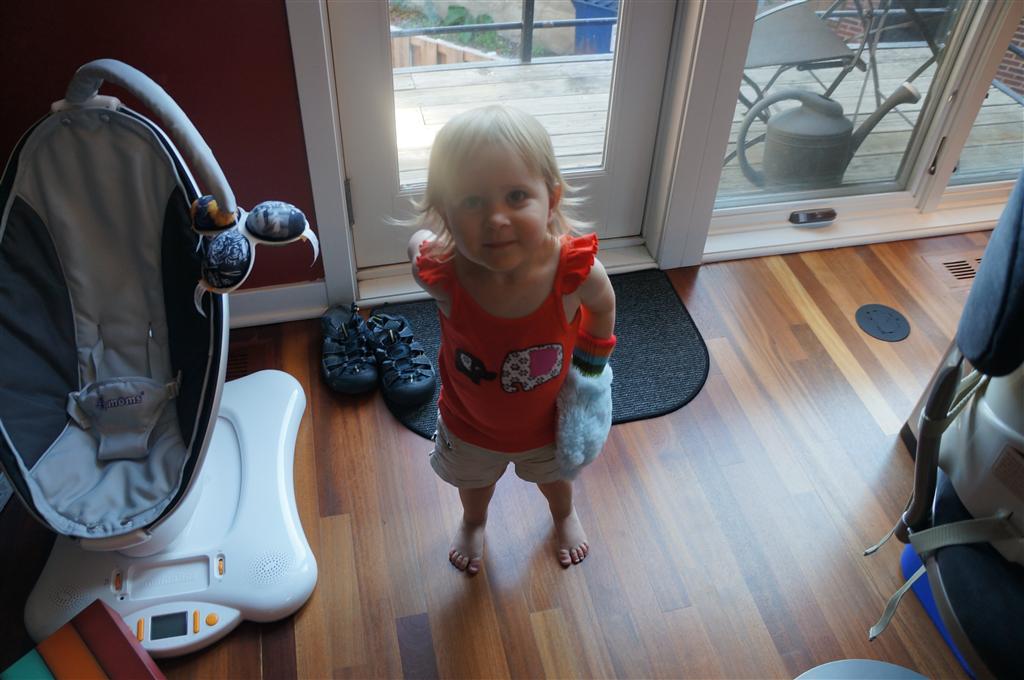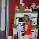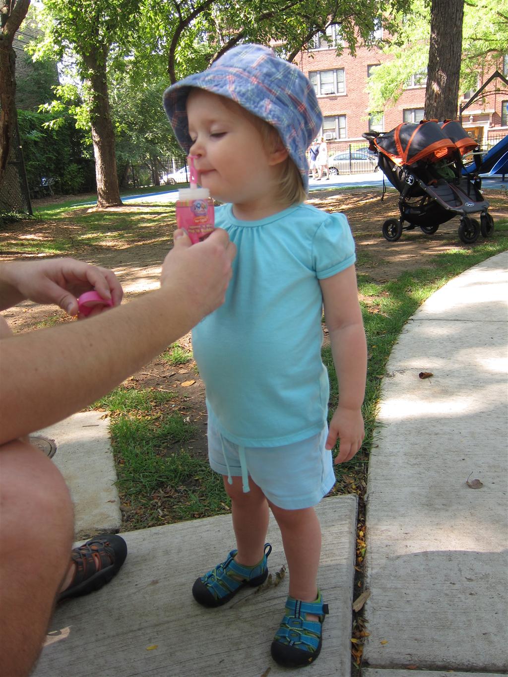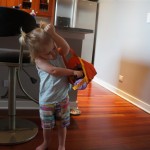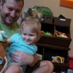 Eleanor continues to work on her vocabulary – she is becoming quite a parrot. She will try to say just about anything that we say to her. We’ve been trying to get her to jump for the past week or so – she only has one more week until her second birthday, and apparently jumping is one of the milestones that they measure at age two. She likes it when I jump while holding her in my arms, but hasn’t mastered doing it by herself yet. She did blow bubbles with the bubble soap all by herself this week for the first time.